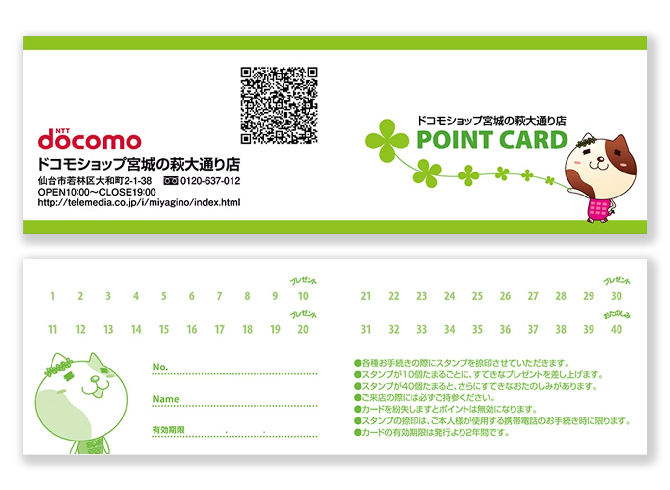 オリジナルキャラクター「はぎねこ」と、来店スタンプカードを制作しました。