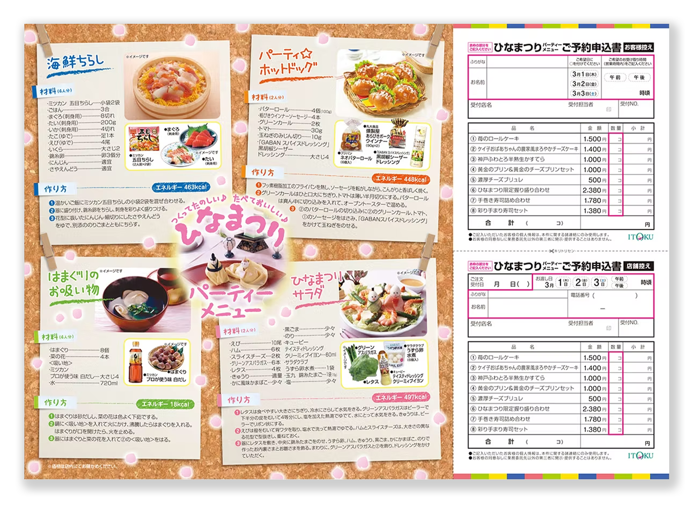 ITOKUさんのひな祭り用パーティーメニュー注文リーフレットを制作しました。